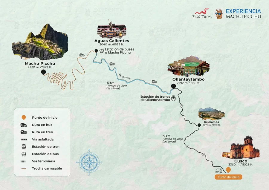 • El bus partirá con dirección a la estación de trenes de Ollantaytambo que está a 1 hora y 45 minutos de viaje, esta localidad se encuentra en el Valle Sagrado.