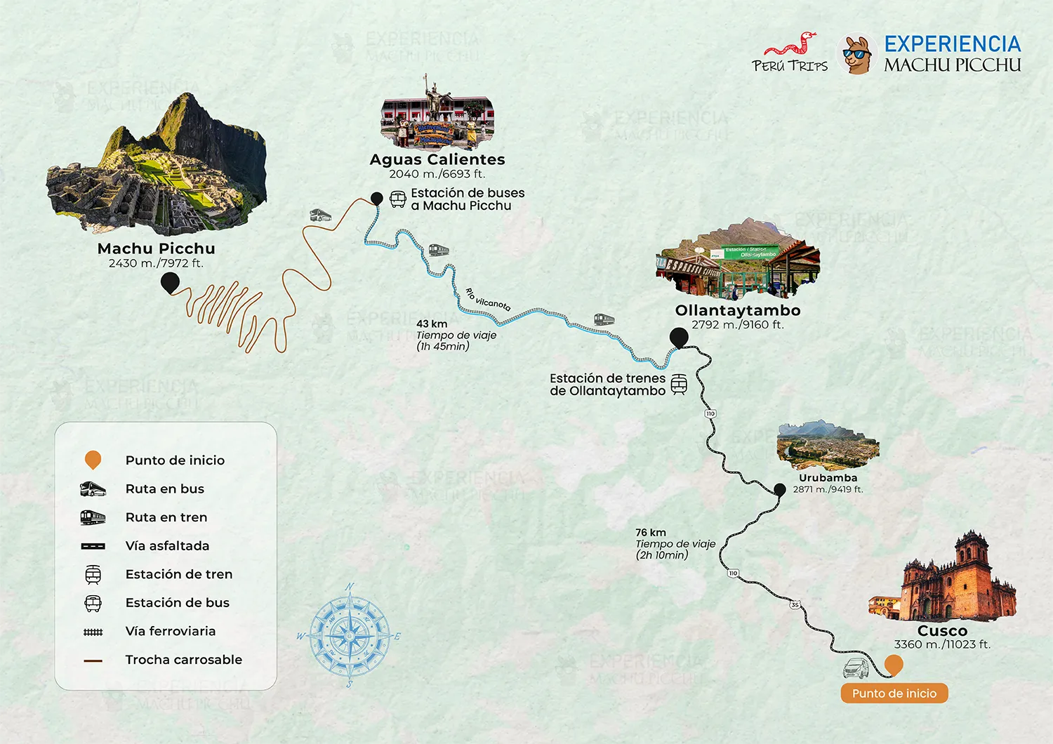 • Tren de Ollantaytambo – Aguas Calientes.