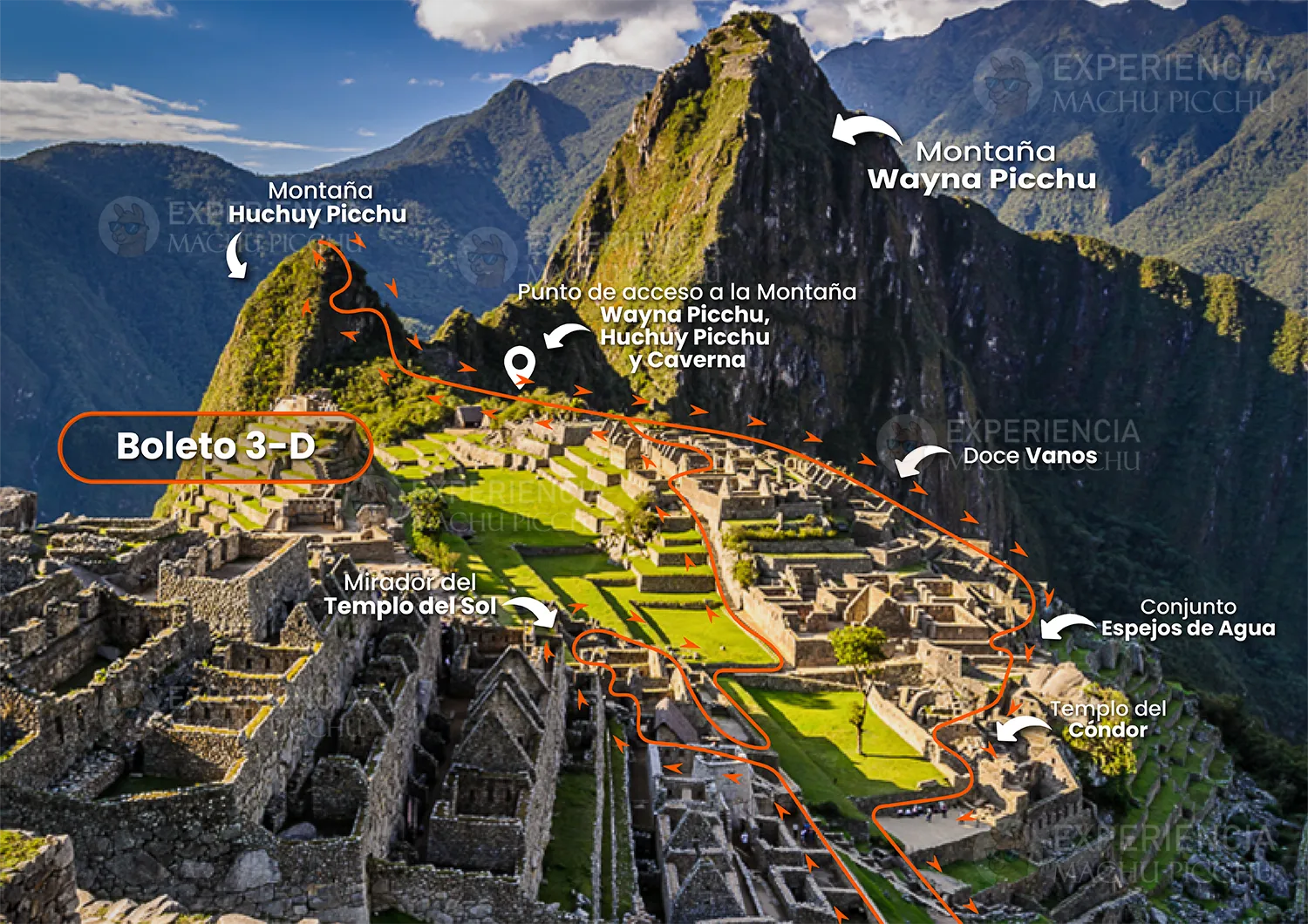 Boleto de ingreso a Machu Picchu, con el circuito 3 – D sujeto a disponibilidad, abarca el recorrido por la parte baja de la ciudadela o también llamado sector de la realeza y la visita a la montaña huchuy picchu.